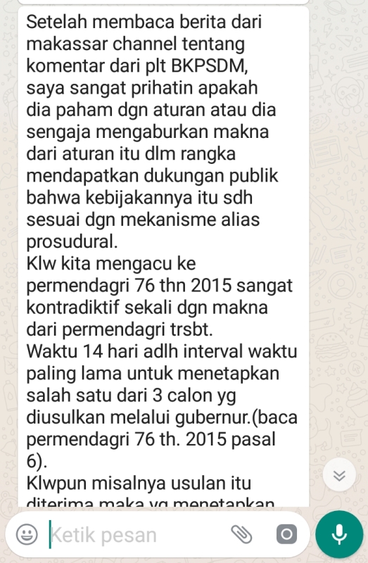 Menurut Imran AR Mursali yang berpostur subur ini, “Kesalahan fatal dilakukan ketika bupati memberi penghormatan kepada mantan terpidana korupsi M Irfan sebagai kepala ULP Pemkab Takalar.”