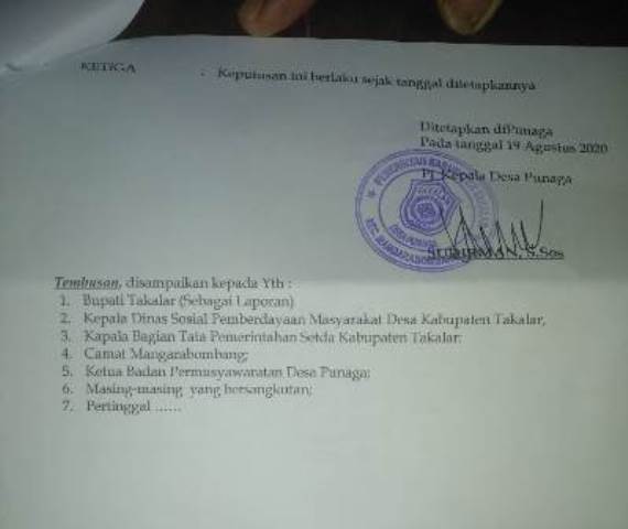 “Kalau ada yang menilai atau menduga bahwa SK Kades ada unsur balas dendam, bisa jadi demikian. Karena salah seorang staf desa yang dipecat, bapaknya ikut dalam aksi demo memprotes kebijakan Kades,” kata Mappaturu dikutip oleh Noto.