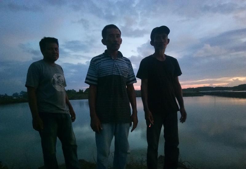 Sesudah itu, saya pun berbincang-bincang dengan Rombo ditemani Empo dan Abdul Basir Daeng Se’re. Namun sebelumnya, Rombo mengajak saya mengitari tambak menyaksikan “parade” udang windu peliharaannya. Terlihat mata udang seperti menyala diterpa cahaya senter, nampak sebagian cuek dengan kehadiran kami, sebagian lagi “malu-malu kucing” dengan gerakan mundur perlahan meninggalkan kami.