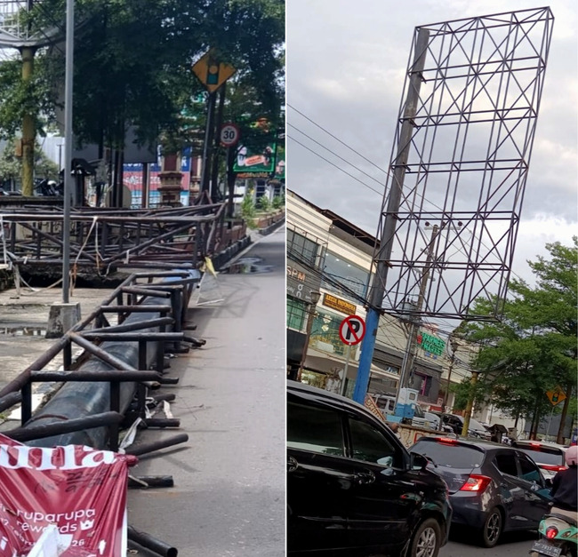 Konstruksi reklame besar di trotoar jalan depan Kompleks Ruko Jade atau kawasan ruko Ramayana itu menurut Iwan, pernah dibongkar Pemkot Makassar karena menyalahi aturan.