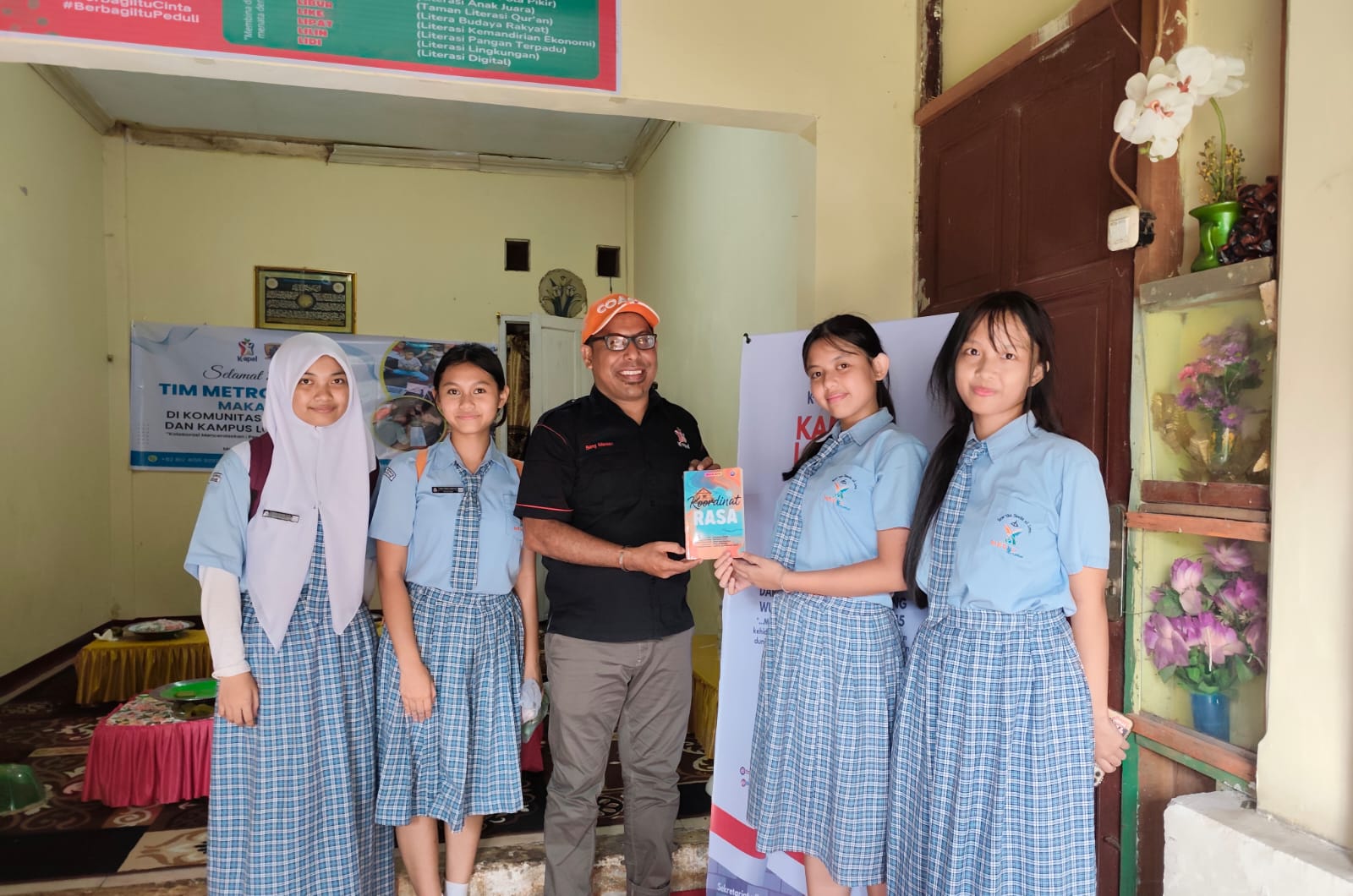 MAKASSARCHANNEL, MAKASSAR– Komunitas Anak Pelangi (K-apel) dan Kampus Lorong K-apel menerima kunjungan perkenalan dari Pengurus OSIS SMP Metro School Makassar di Pusat Pengembangan Potensi Masyarakat K-apel, Lorong Daeng Jakking, Kelurahan Parang Tambung, Kecamatan Tamalate, Senin (8/12/2025).