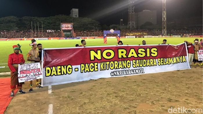 Sebelum pertandingan dimulai sekelompok mahasiswa asal Papua bersama kelompok suporter mengampanyekan antirasis. Mereka membawa spanduk bertuliskan: ”No Rasis-Daeng Pace Kitorang Saudara Selamanya” dan poster “NKRI Harga Mati” sambil mengelilingi pinggir lapangan hijau.