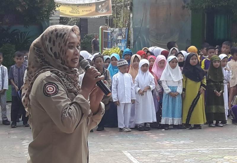 Syakhruddin, di hadapan anak-anak, menjelaskan beberapa jenis bencana, mulai dari bencana alam hingga bencana sosial. Ia memberikan penjelasan sambil melakukan simulasi. Sesekali ia bercanda, yang membuat suasana menjadi segar.