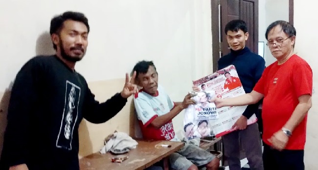 Warga yang dikunjungi menyambut gembira kedatangan Tim Sahabat James yang membagikan mereka kalender tahun 2024 bergambar foto James Wehantouw bersama Kaesang Pangarep, Ketua Umum PSI.